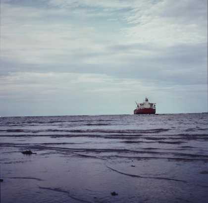 In 1964 Riley introduced variations in tone into her work, composing a series of paintings, including Hesitate, from a full palette of grey. The painting features even rows of circular and elliptical shapes. This combination of shifting tone and changing shapes gives the viewer the impression of motion in the painting, as if two horizontal abutting cylinders are receding into the painting, or as if a wave is oscillating across its surface. It is one of a group of six black and white paintings made with emulsion on a hardboard, each with titles similarly implying emotional tension including Disturbance, Chill, Loss, Where and Pause. Riley described Pause (in a conversation recorded 11 April 1986) with its vertical fold as associated with the human figure, and Hesitate in contrast as a landscape. Acquired by Tate in 1985, it is a painting that is constantly in demand for display. As with Fall, Hesitate has a similar complexity of water sensitivity and a surface of polyvinyl acetate (PVAc) vulnerable to gloss changes with established methods for cleaning.